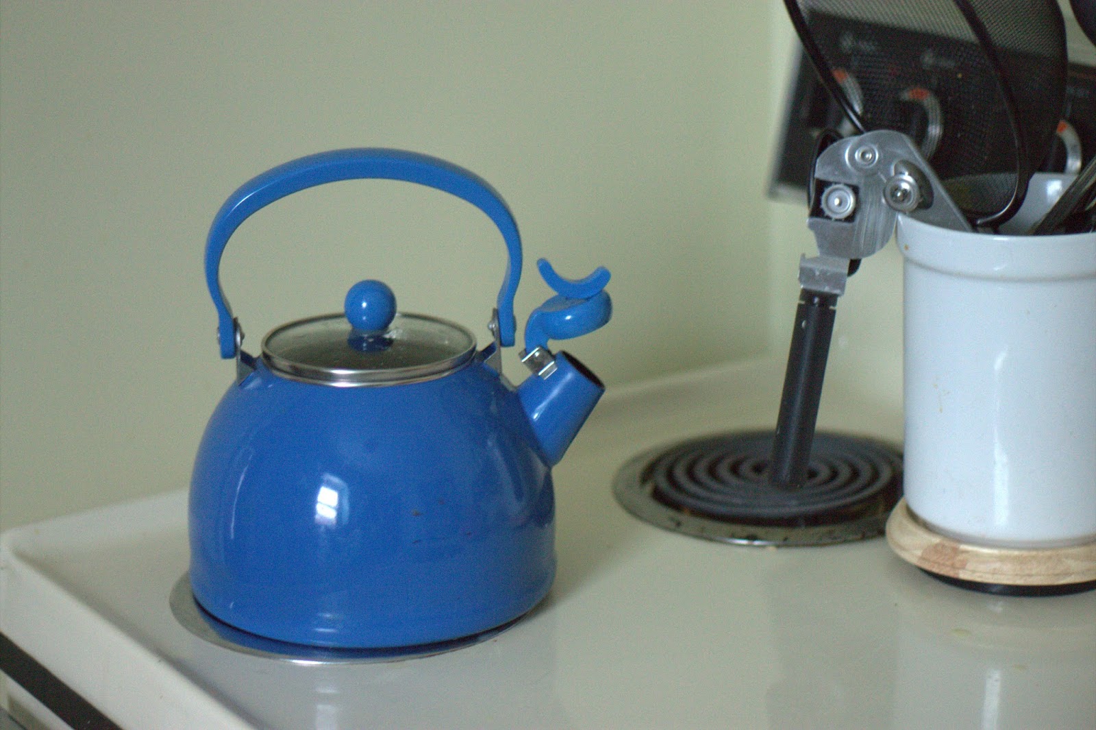 We put the load in and run upstairs to let Des in and turn off the boiling kettle.